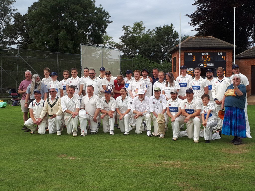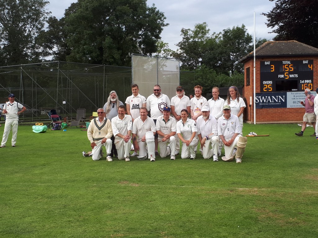 I encountered the B Sharps at The Cropredy Festival which is run by Fairport Convention every August. They have an annual fixture against Cropredy CC each year on the Sunday after the last night of the festival. Originally it was Cropredy CC v Fairport Convention Festival XI in which members of the band and associates played against the village side. Dave Pegg responded to the challenge by the village club for a fixture after the festival and in 1996 the first fixture was played. Steve Sheldon being a keen cricketer and Fairport associate was suggested to organise the fixture by Dave Swarbrick, the bands legendary fiddle player not to be confused with Derbyshire slow left arm bowler Fred Swarbook.