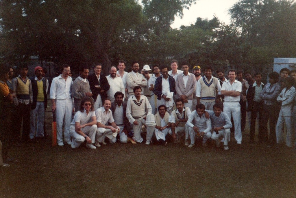 The Indian Airlines opening bowlers were going through their warming up exercises as we made our way out to the crease and Stuart manfully agreed to face the first over. Fast bowling was becoming popular in India now with Kapil Dev being their new role model so we couldn’t expect a few overs of gentle medium before the spinners came on. Needless to say in due deference to Stuart’s batting, which was far better than mine as he was a number 3 or 4 in our 1st XI, I had a different batting partner when I got to face the first ball of the next over. Having watched the first over from the safety of the other end the sight of the ball arcing through the air at great pace and also seaming once it had pitched did not fill me with great confidence as it had already accounted for a batsman of much greater ability than me. The other opening bowler wandered back to his mark and began his run up after I had gone through the rather unnecessary rituals of taking guard and looking round the field. I heard the first ball fizzing past before I actually saw it arc away from my outstretched bat which was nowhere near it so I’d survived the first ball. The bowler immediately realised that that sort of delivery was no good for dislodging me as I wouldn’t get anywhere near it. The next ball thudded into my pad at shin height and I actually felt pain through the pad such as the momentum of the delivery. I expected the umpire to send me back to the pavilion where at least I could enjoy some more of the exellent lunch that had been served. I survived that delivery however as the umpire probably thought I wouldn’t last long any way and took pity on me. Another ball flew past the edge as the bowler got his line slightly wrong by pitching on a good length and then flying off to the right before being grabbed by the ‘keeper. I finally made contact with the 4th delivery of the over with a thickish outside edge that flew wide of third slip area at considerable pace. I had got off the mark with what would surely be a boundary with no third man indeed anyone in a defensive fielding position at that juncture. My joy was very short lived as 3rd slip dived full length a pulled off a miraculous stop and I remained on nought. Amazingly I survived that over and the relative safety of the non-strikers end which Geoff Boycott would always say was the best place to play fast bowling from. My colleague at the other end now prepared to face the music and he was a fellow guest on the tour and had previously played for Middlesex 2nd XI. Although that had been quite a while before he still had enough ability to face top quality bowling and to my dismay pushed one past the close in field and called me for the run. I answered the call and unfortunately a fielder had reached the ball by then so there was no chance of a second as the ball whistled in over the bails to the ‘keeper. I then had the opportunity to face the other opening bowler who was probably not too bothered about having a single taken off him the previous delivery. He bowled me a straight ball which I managed to actually middle with my defensive prod. It looped gently to a very short leg and I wandered off to enjoy some more of the curry relieved that at least no further physical pain had been inflicted on me.